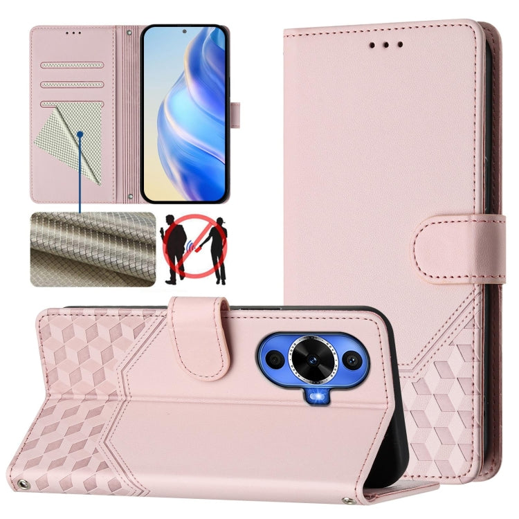Funda de Cuero con Estampado de Panal RFID para Huawei Nova 12S 4G (Rosa)