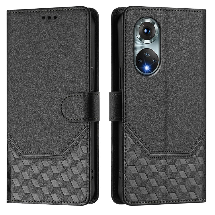 Funda de Cuero con Estampado de Panal y Protección Rfid para Huawei Nova 9 (Negra)