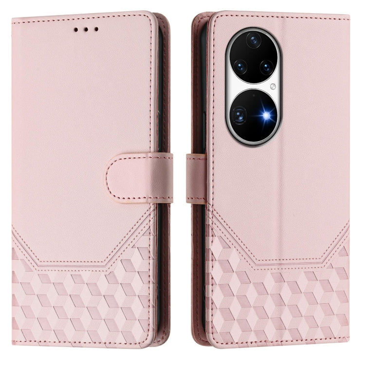 Funda de Cuero con Estampado de Panal Rfid para Huawei P50 Pro (Rosa)
