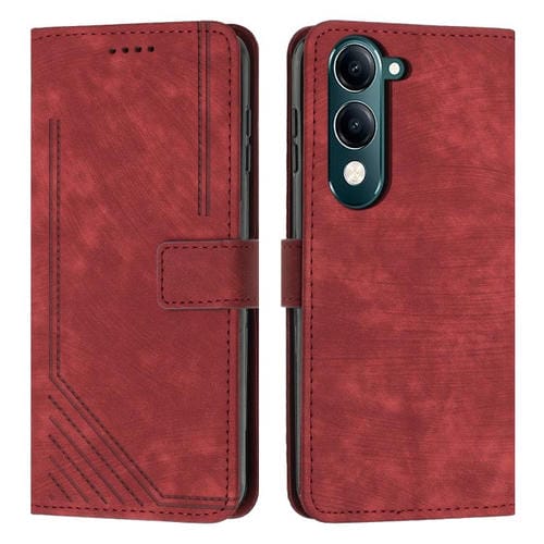 Funda de Cuero con Estampado de Rayas y Cordón para Vivo Y29S 5G / Y04 4G (Roja)