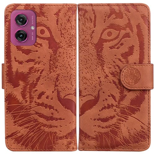 Funda de Cuero para Motorola Moto G55 con Estampado de Tigre (Marrón)