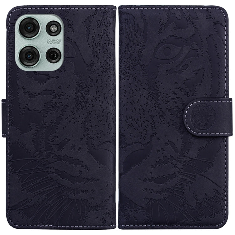 Funda de Cuero Motorola Moto G75 5G con Estampado de Tigre (Negra)