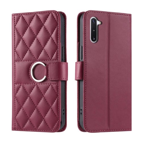Funda de Cuero Samsung Galaxy Note10 Forma de Rombo Hebilla de Anillo (Rojo)