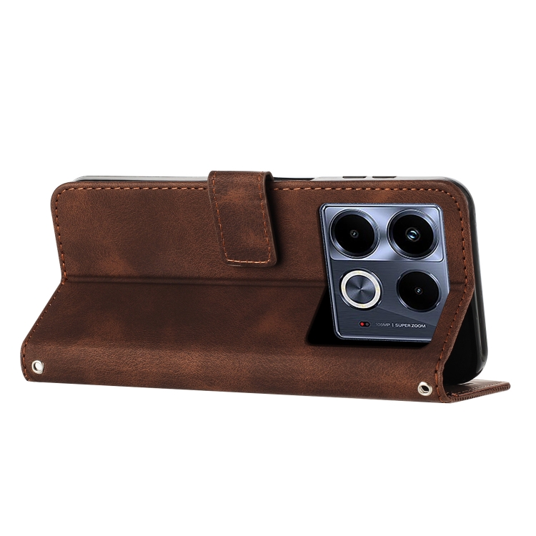 Funda de Cuero Triángulo para Infinix Note 40 5G Dream con Cordón Largo (Marrón)