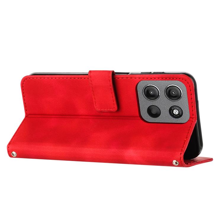 Funda de Cuero Triangular para Motorola Moto G15 Dream con Cordón (Rojo)