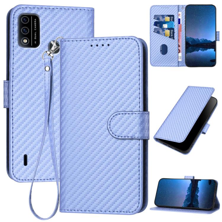 Funda de Cuero con Hebilla de Fibra de Carbono para Teléfono Itel A48 Yx0070 con Cordón (Morado Claro)