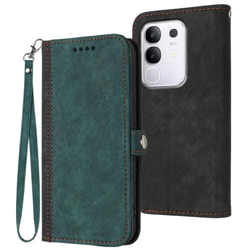 Funda de Cuero con Hebilla Lateral y Doble Pliegue para Vivo Y29 4G (Verde Oscuro)