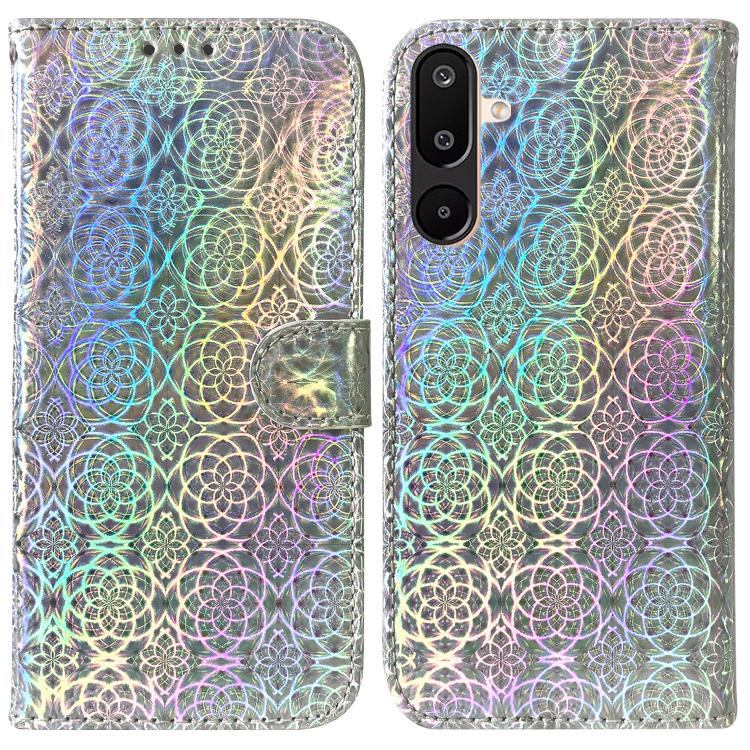 Funda de cuero con hebilla magnética colorida para Samsung Galaxy M16 5G / F16 5G / M36 5G (plateada)