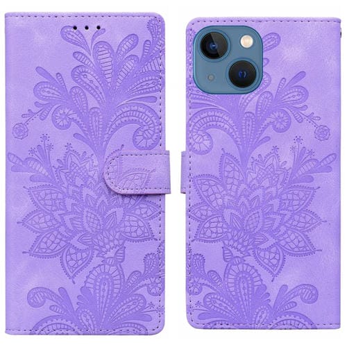 Funda de Cuero con Hebilla Magnética y Diseño Floral En Relieve para iPhone 15 (Morado)