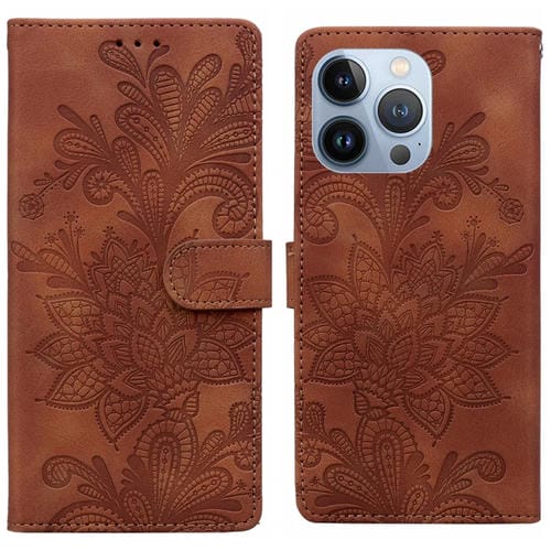 Funda de Cuero con Hebilla Magnética y Diseño Floral En Relieve para iPhone 15 Pro Max (Marrón)