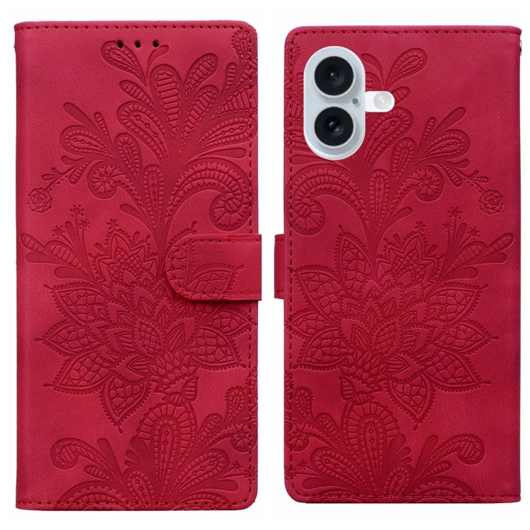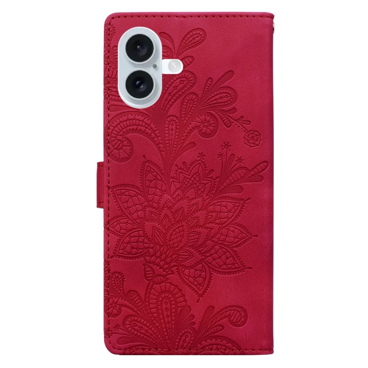 Funda de Cuero con Hebilla Magnética y Diseño Floral En Relieve para iPhone 16 (Rojo)