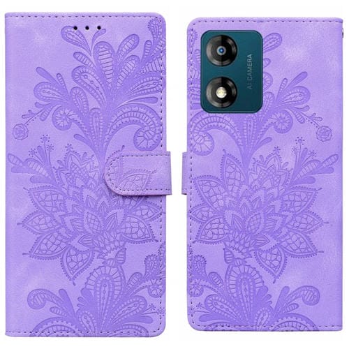 Funda de Cuero para Motorola Moto E13 con Hebilla Magnética y Diseño Floral (Morado)