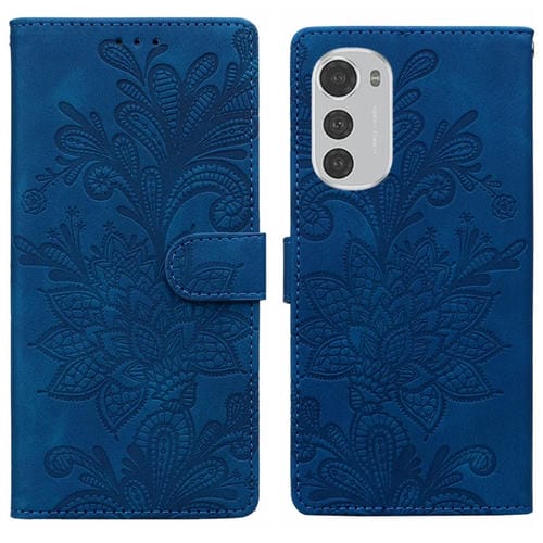Funda de Cuero con Hebilla Magnética y Diseño Floral para Motorola Moto E32 4G/E32S (Azul)