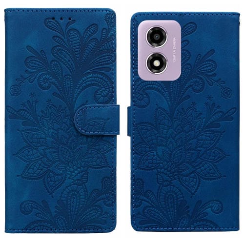 Funda de Cuero con Hebilla Magnética y Diseño Floral para Motorola Moto G Play (2024) (Azul)