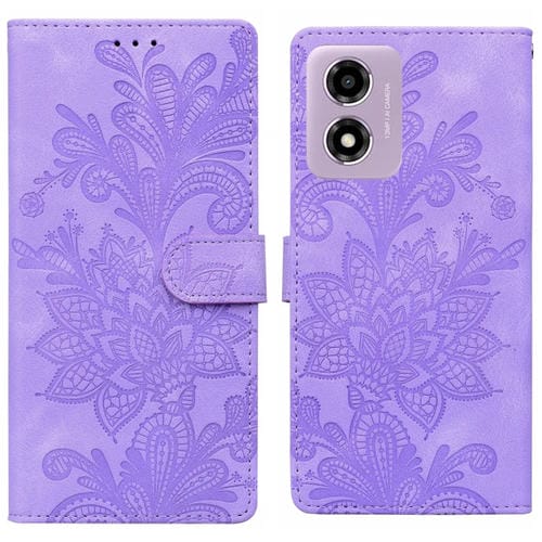 Funda de Cuero con Hebilla Magnética y Diseño Floral para Motorola Moto G Play (2024) (Morado)