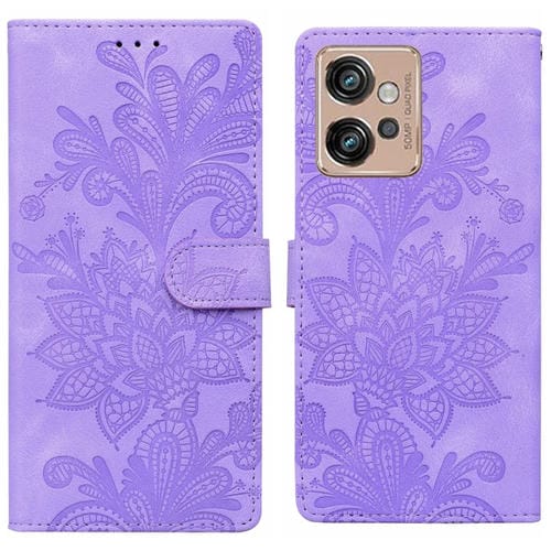 Funda de Cuero con Hebilla Magnética y Diseño Floral en Relieve para Motorola Moto G32 (Morado)