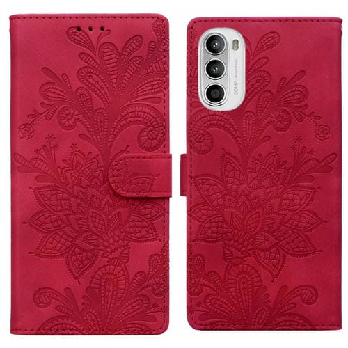Funda de Cuero con Hebilla Magnética y Diseño Floral para Motorola Moto G52 4G/G82 (Rojo)