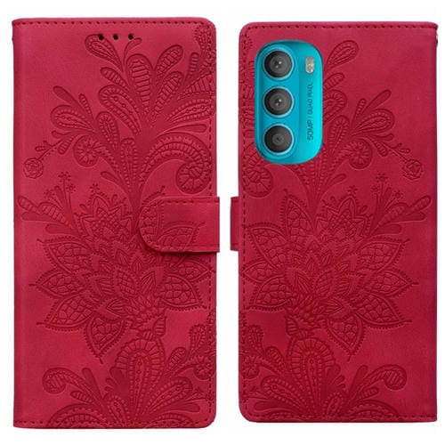 Funda de Cuero con Hebilla Magnética y Diseño Floral para Motorola Moto G71 5G (Rojo)
