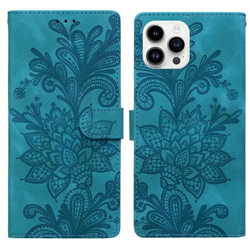 Funda de Cuero con Hebilla Magnética y Encaje Floral En Relieve para iPhone 14 Pro (Verde)