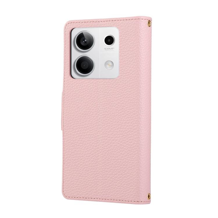 Funda de cuero con hebilla redonda y cremallera para Redmi Note 13 5G, con correa cruzada (rosa)