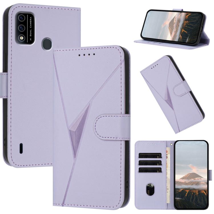 Funda de Cuero Itel A48 con Hebilla y Diseño Triangular (Morado Claro)