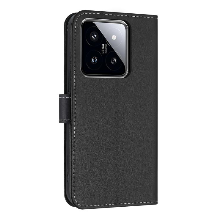 Funda de cuero con lazo metálico y correa para la mano para Xiaomi 14 Pro (negra)