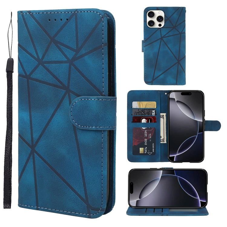 Funda de Cuero para iPhone 16 Pro Max con Líneas Geométricas y Tacto Agradable (Azul)