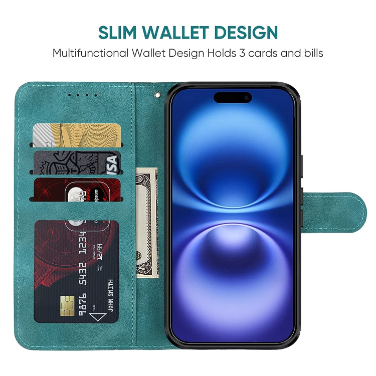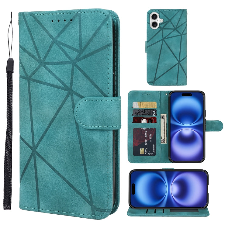 Funda de Cuero para iPhone 16 Líneas Geométricas Tacto Agradable (Verde)