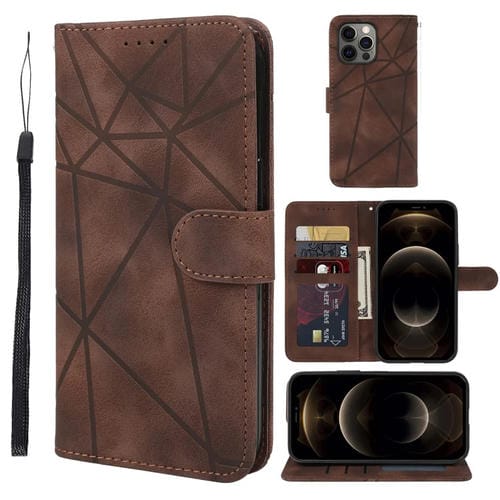Étui en cuir à lignes géométriques soyeuses au toucher pour iPhone 12 Pro Max (marron)