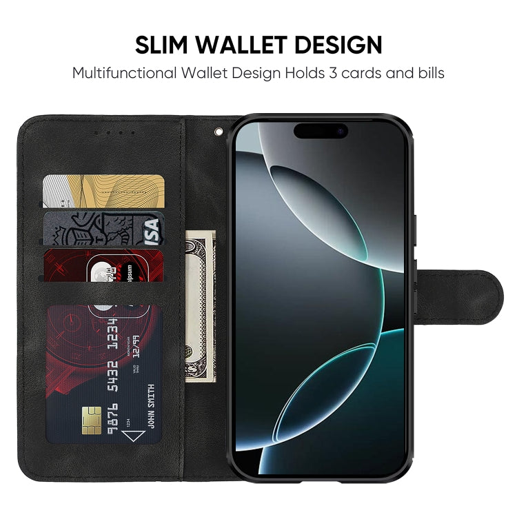 Funda de Cuero para iPhone 16 Pro Líneas Geométricas Tacto Sedoso (Negro)