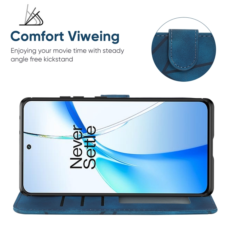 Funda de Cuero para OnePlus Ace 3V con Líneas Geométricas y Tacto Suave (Azul)