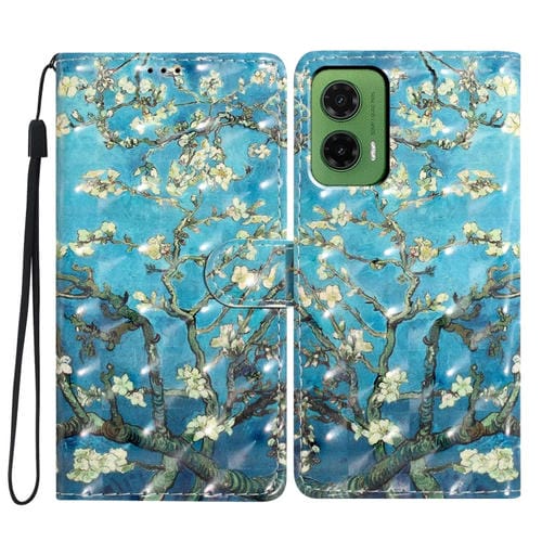 Funda de Cuero para Motorola Moto G35 con Patrón 3D Flor de Albaricoque (Azul)