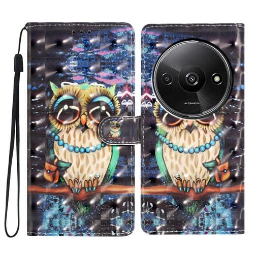 Funda de Cuero con Patrón 3D para Redmi A3 (Búho de Ojos Grandes)