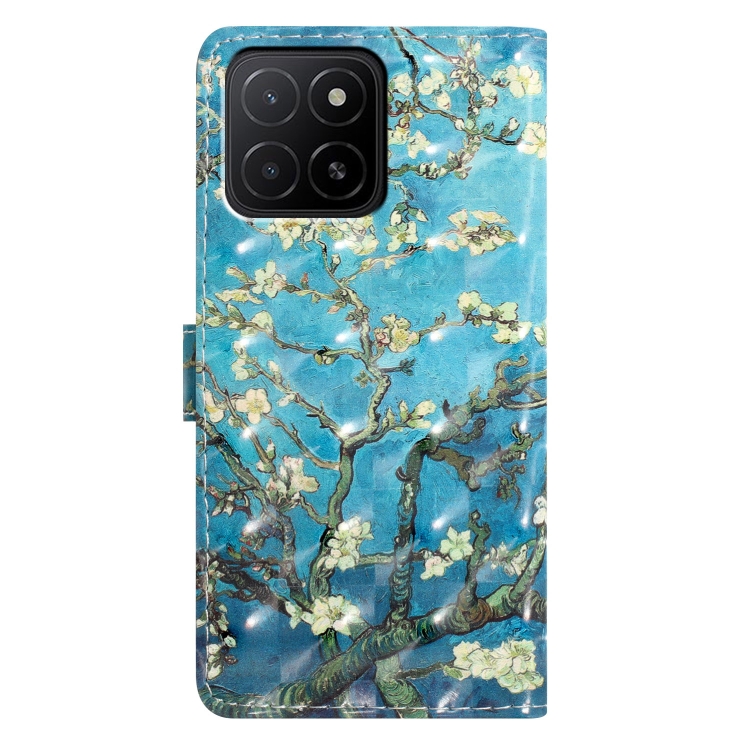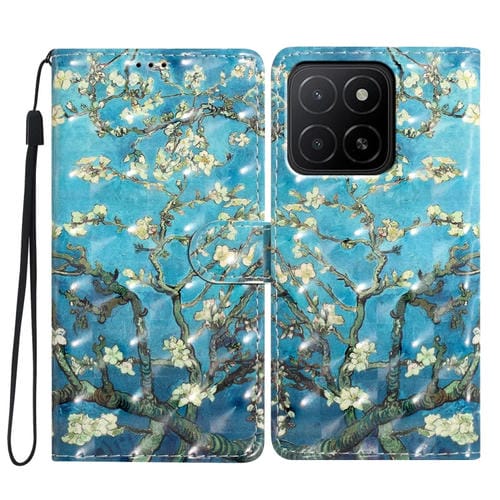 Funda de Cuero con Patrón 3D para Honor X5B 4G (Flor de Albaricoque con Base Azul)