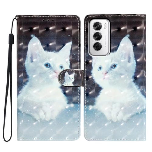 Funda de Cuero con Patrón 3D para Teléfono Oppo Reno12 Global (Gato Blanco)