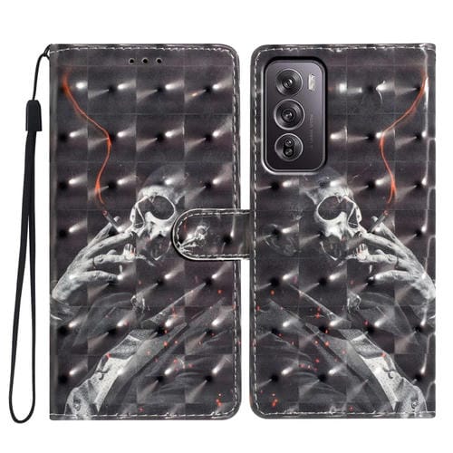 Étui de téléphone en cuir à motif 3D pour OPPO Reno12 Pro Global (crâne)