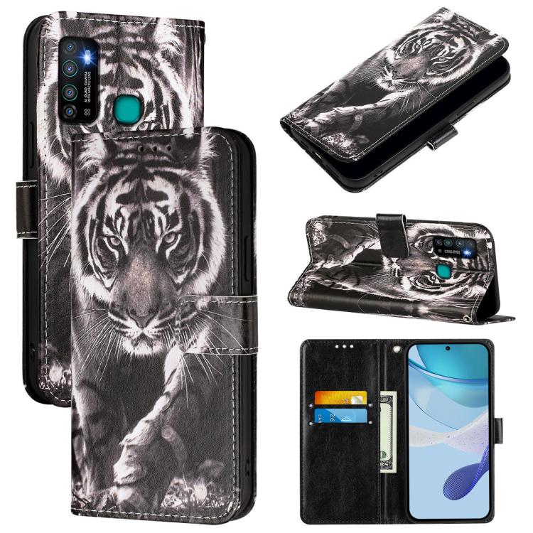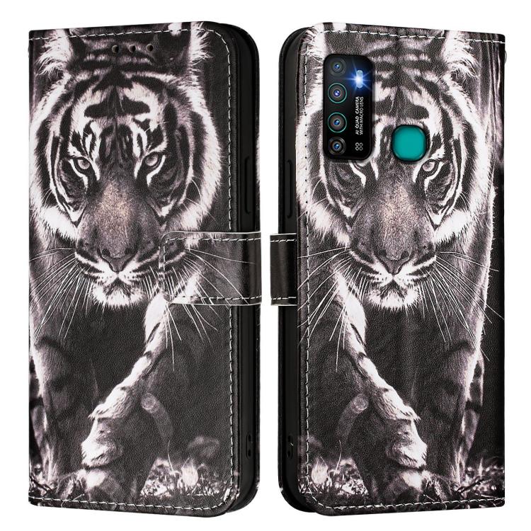 Funda de Cuero para Infinix Hot 9 y Hot 9 Pro con Patrón Tigre (Blanco y Negro)