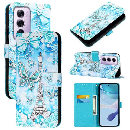 Funda de Cuero con Patrón de Dibujo de Colores para Oppo Reno12 Pro Global (Mariposa En Forma de Torre)