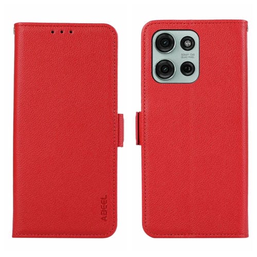 Funda de Cuero Abeel con Patrón de Lichi y Cierre Magnético para Motorola Moto G75 5G (Rojo)