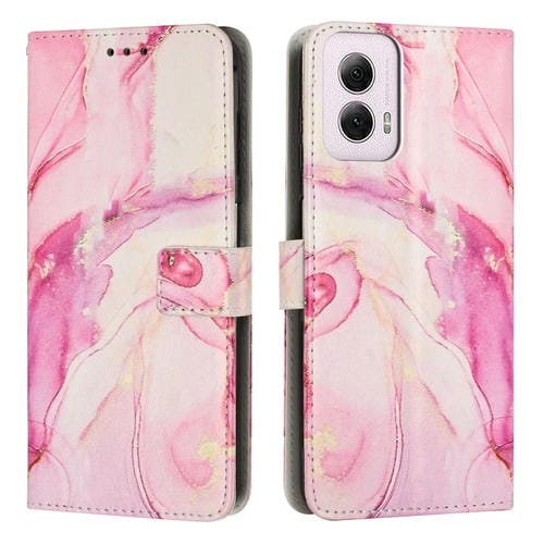 Funda de Cuero con Patrón de Mármol para Motorola Moto G 5G (2024) (Oro Rosa)