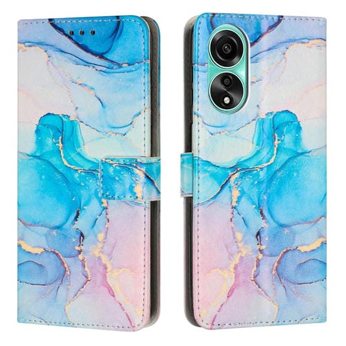 Funda de Cuero con Patrón de Mármol Pintado para Oppo A38 4G/A18 (Rosa y Verde)
