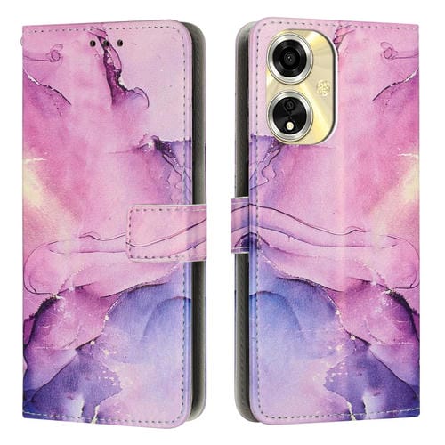 Funda de Cuero con Patrón de Mármol Pintado para Teléfono Oppo A59 5G Global (Morado)