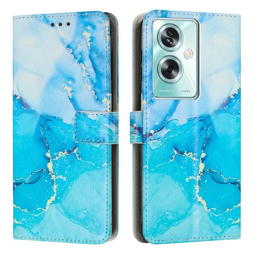 Funda de Cuero con Patrón de Mármol Pintado para Teléfono Oppo A79 5G Global (Azul Verde)