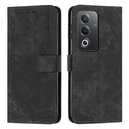 Funda de Cuero con Patrón de Rayas y Tacto Suave para Oppo A3 Pro Global Skin Feel con Cordón Largo (Negro)