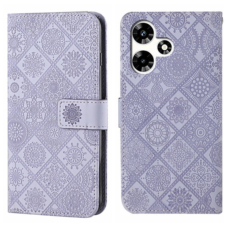 Funda de Cuero con Patrón en Relieve Estilo Étnico para Infinix Hot 30 4G (Morado)