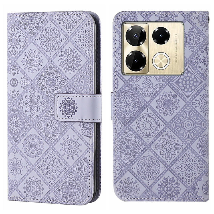Funda de Cuero con Patrón en Relieve Estilo Étnico para Infinix Note 40 Pro (Morado)
