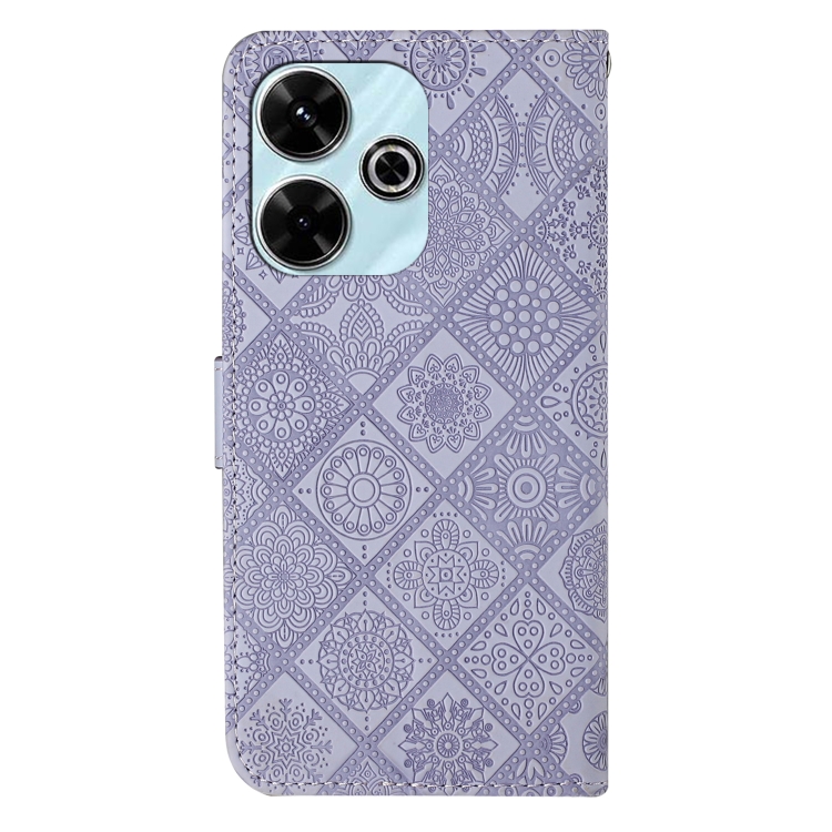 Funda de Cuero con Patrón En Relieve de Estilo Étnico para Redmi 13 4G (Morado)