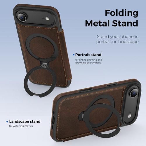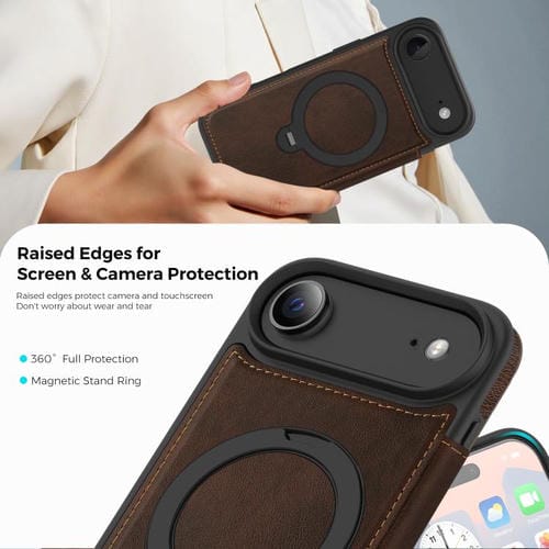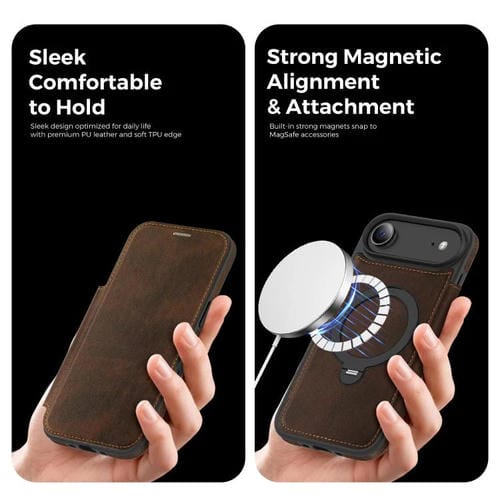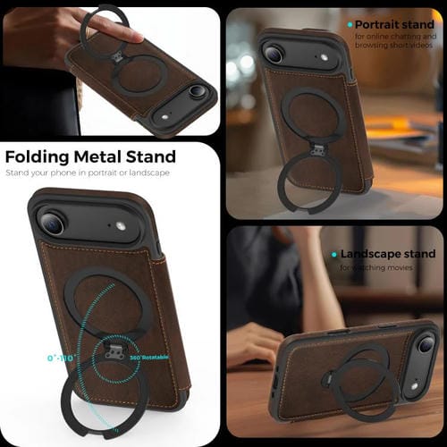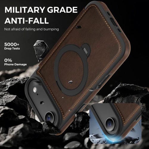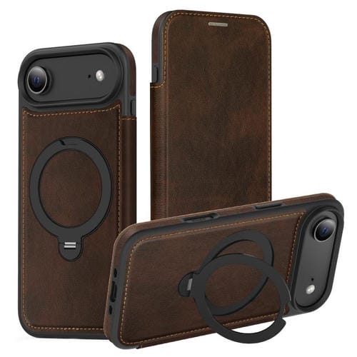 Funda de cuero con protección MagSafe RFID para iPhone 17 con rotación de 360 grados (café)