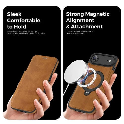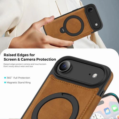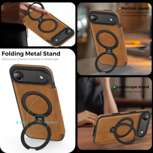Funda de cuero con protección MagSafe RFID para iPhone 17 con rotación de 360 grados (marrón)