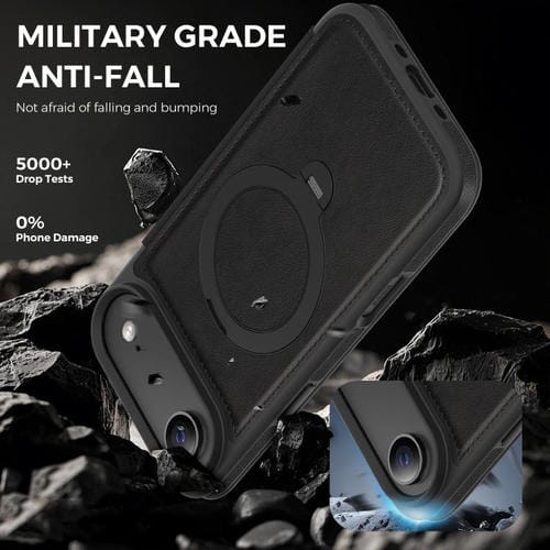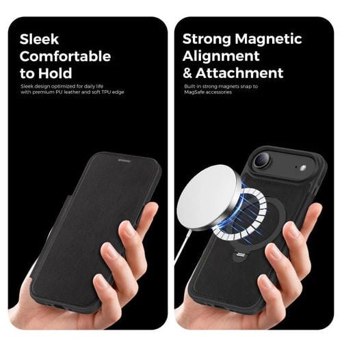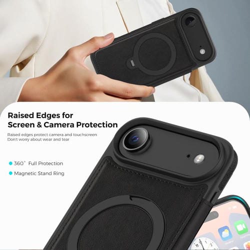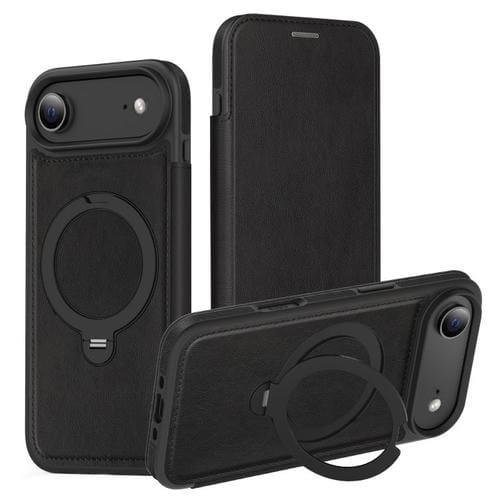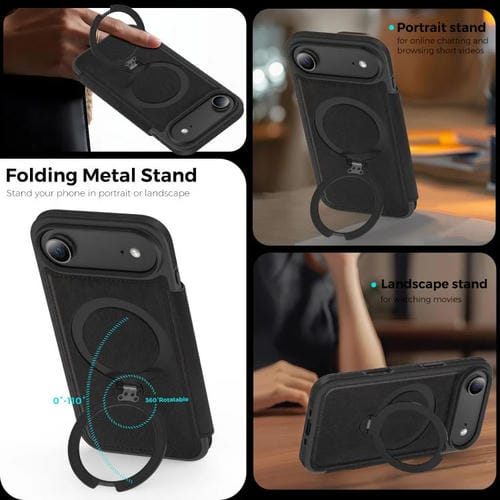 Funda de cuero con protección MagSafe RFID para iPhone 17, con rotación de 360 grados y soporte (negro)